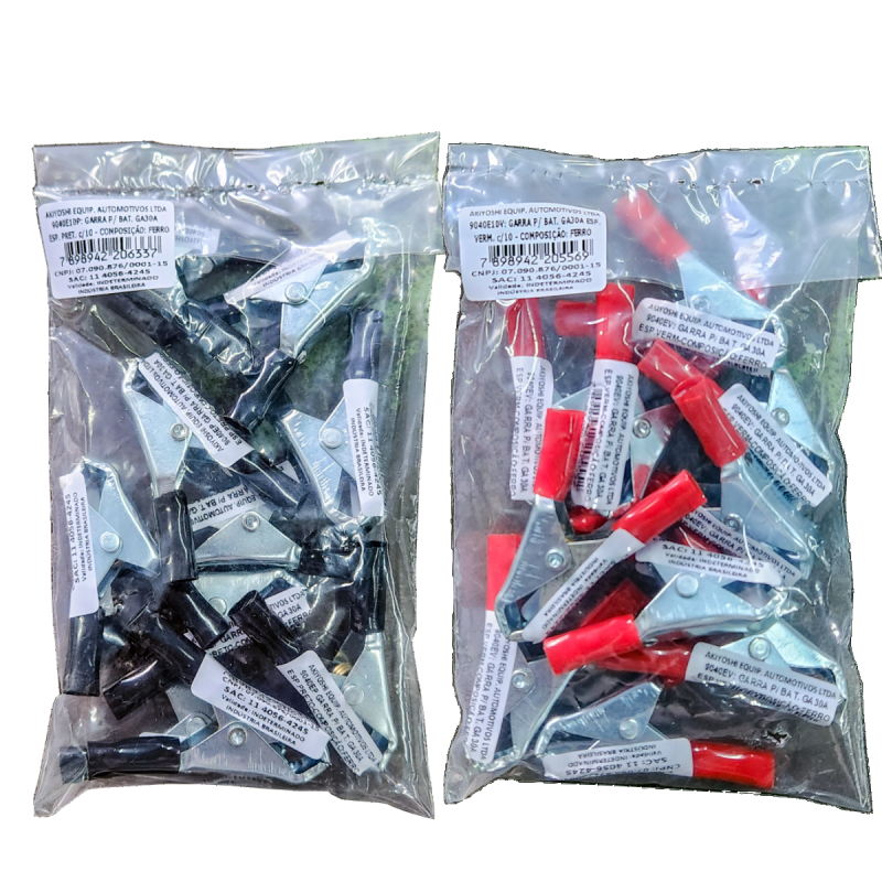 Embalamos as garras de 30A a 800A em pacote simples SEM solapa caso o cliente deseje colocar a sua marca ou se for comercializar apenas em pacote fechado.